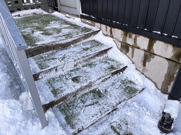 また、第二製造部では転倒防止の為、階段など滑りやすい場所には人工芝マットを敷いたり、融雪剤をまいたりと、補助的な対策も行っています。